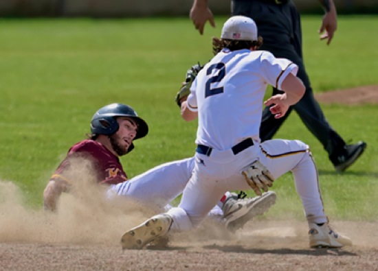 (3rd inning ????) NV #15 gets his foot to the bag before BH #2 can apply the tag at 2nd base- SAFE!! (STEAL)