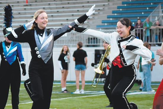 SCOTT STODDARD / Daily Courier Grants Pass High drum major Anna Pollard (left) and Keisei High alto saxophonist Akane Honda dance after the concert.