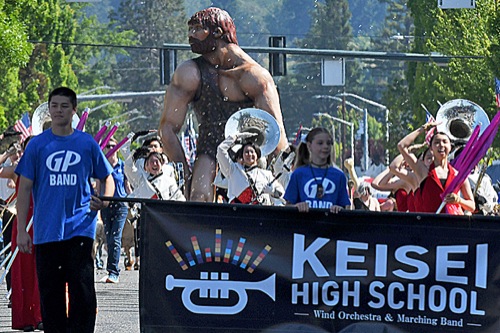 The Keisei High School marching band, visiting Grants Pass from Kumamoto, Japan, participates in the Boatnik Parade on May 24.