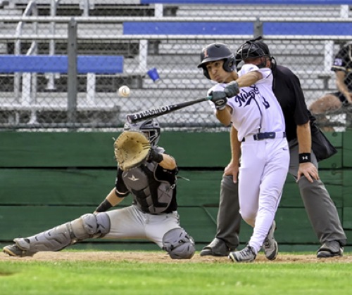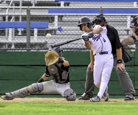 (4th inning? Maybe 3rd) Nuggets # 18 smacks this pitch and drives in a run. Photos By: Joel Takarsh