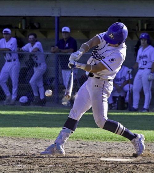 (6th inning) With bases loaded Nuggets #6 delivers a single but it drives in 2 runs and the Nuggets go ahead of Roseburg 2-0