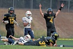 Rogue River's Trevor Dirks (right) breaks loose and heads for the end zone to score the second of his two first-quarter touchdowns against Monroe on Friday night, Sept. 5, at Chieftain Stadium.