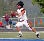 North Valley wide receiver Max Freedman hauls in a touchdown reception over a Hidden Valley defender in the first quarter to gave the Knights a 20-0 lead over Hidden Valley in Murphy on Friday, Sept. 19.