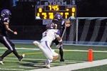 Cascade Christian teammates Rowan Erickson (right) and Tucker Mayben (left) embrace after the Challengers defeated Burns 35-28 to win the Class 3A football state championship Saturday night at Summit High School in Bend.