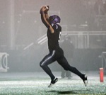 From left, Tucker Mayben, Joey Minard, Blake Patereau and Mikey Covey celebrate during the final minute of the Challengers' victory over Burns in the Class 3A football state championship game Saturday evening at Summit High School in Bend.