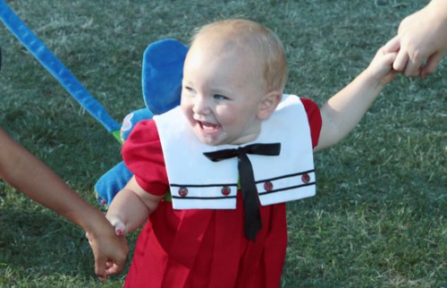 Aria Marcuson, 18 months, learns to dance at her first Back to the Fifties concert at Riverside Park Tuesday. Over 2,000 peolpe were in attendance to the event that kicked off the Back to the Fifties event occuring this week.