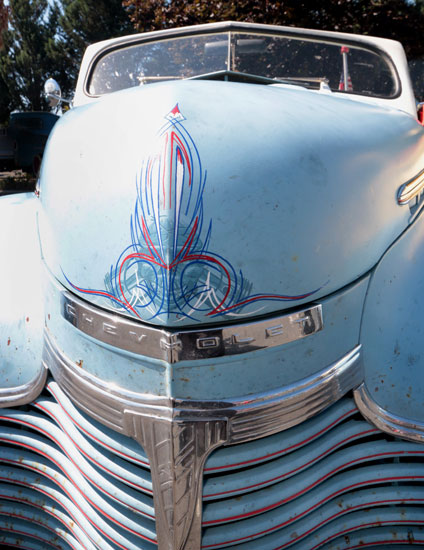 Mike Stanley brought his 1941 two-door Chevrolet to the Classic Car Pre-Show at the Growers' Market parking lot Friday. "I cut the top off and paid a guy $80 to hand paint the pin stripe design on the nose. He put our club's logo hidden in the design. He's a keeper," Stanley said. The event was part of the Back to the Fifties celebration held this year from July 26 to 30. The event was part of the Back to the Fifties celebration held this year from July 26 to 30.