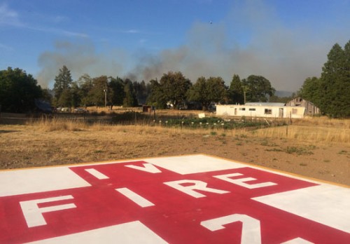 The worst of the fire, as viewed from the Illinois Valley Rural Fire Department's helicopter landing pad. The fire broke out Friday afternoon, compelling authorities to evacuate residents who live along Deer Creek Road.