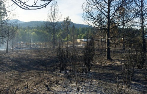 Trees and shrubs across the street from Ray's Food Place on Deer Creek Road in Selma went up in flames after a grass fire broke out Friday afternoon. Authorities evacuated homes along Deer Creek Road just in time for the fire to claim two homes.