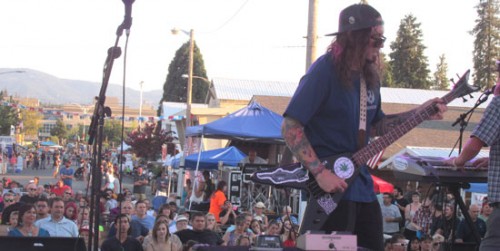 JEFF DUEWEL/Daily Courier Bass player Hathaway Critser of Addictive Volume, a Merlin-based band, cranks Thursday night during Battle of the Bands.