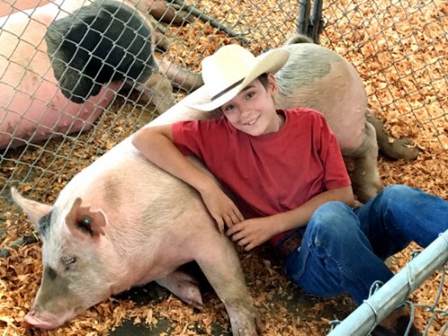 Photo by MARK GATLIN Jacob Cross takes a break with his hog, Squeaks, at the Josephine County Fair this week.