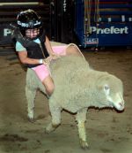 Photo by TOSHKA NELSON Camellia Nelson, 6, with the Clover Buds 4H group took first place in open shows in the barrow and steer categories Wednesday.