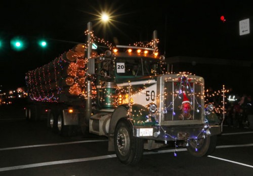 A fire truck covered in colored lights makes it's way up Sixth Street at the Grants Pass Christmas Parade Saturday. This year's theme was "The Magic of Christmas" and featured 42 entries including school marching bands, a Hellgate Excursions jetboat and other fire engines and culminated with Santa Claus atop a rooftop.